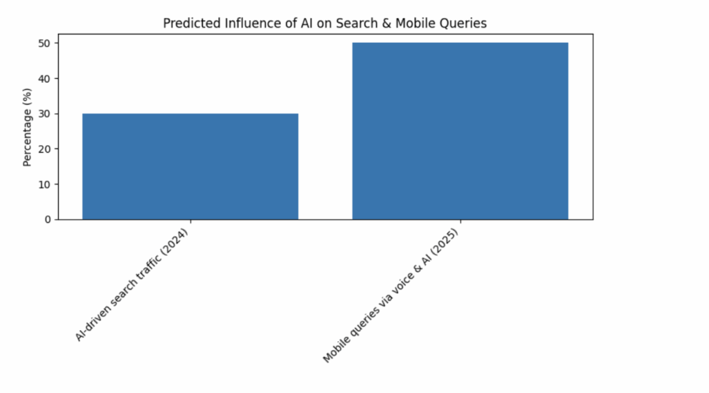 To accompany the report, here’s the bar chart illustrating the predicted influence of AI on search and mobile queries: